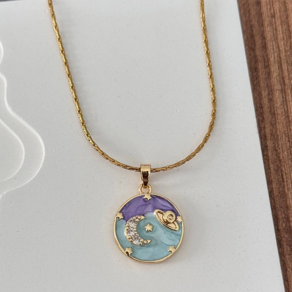 Yuvarlak Gökyüzü Plaka Kolye